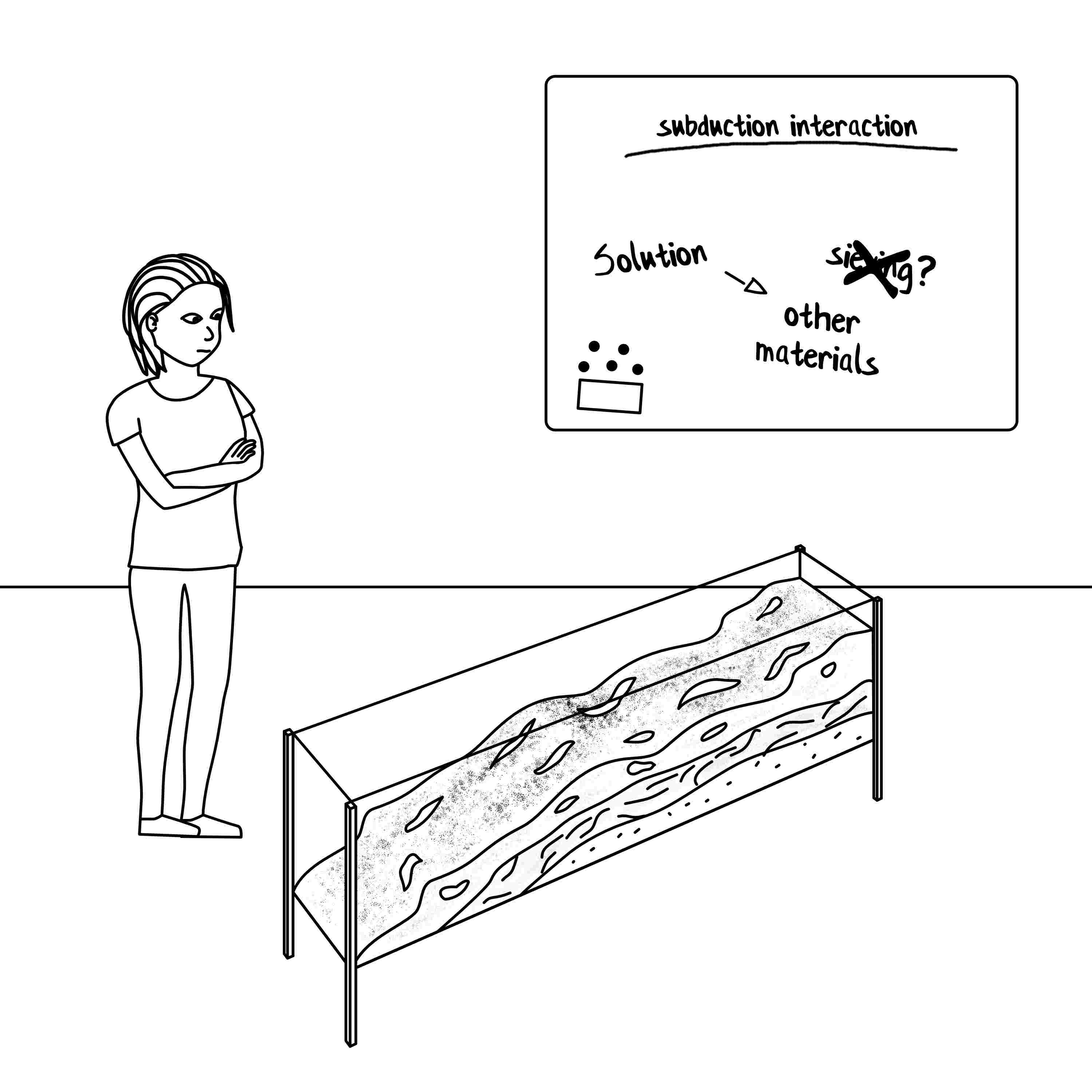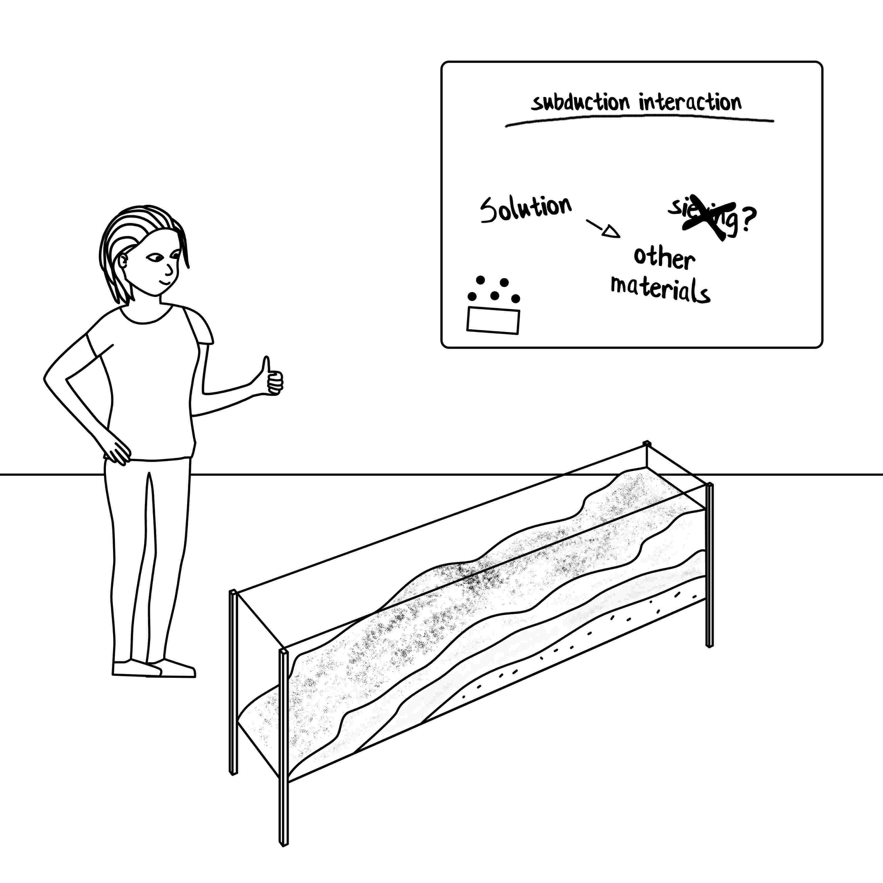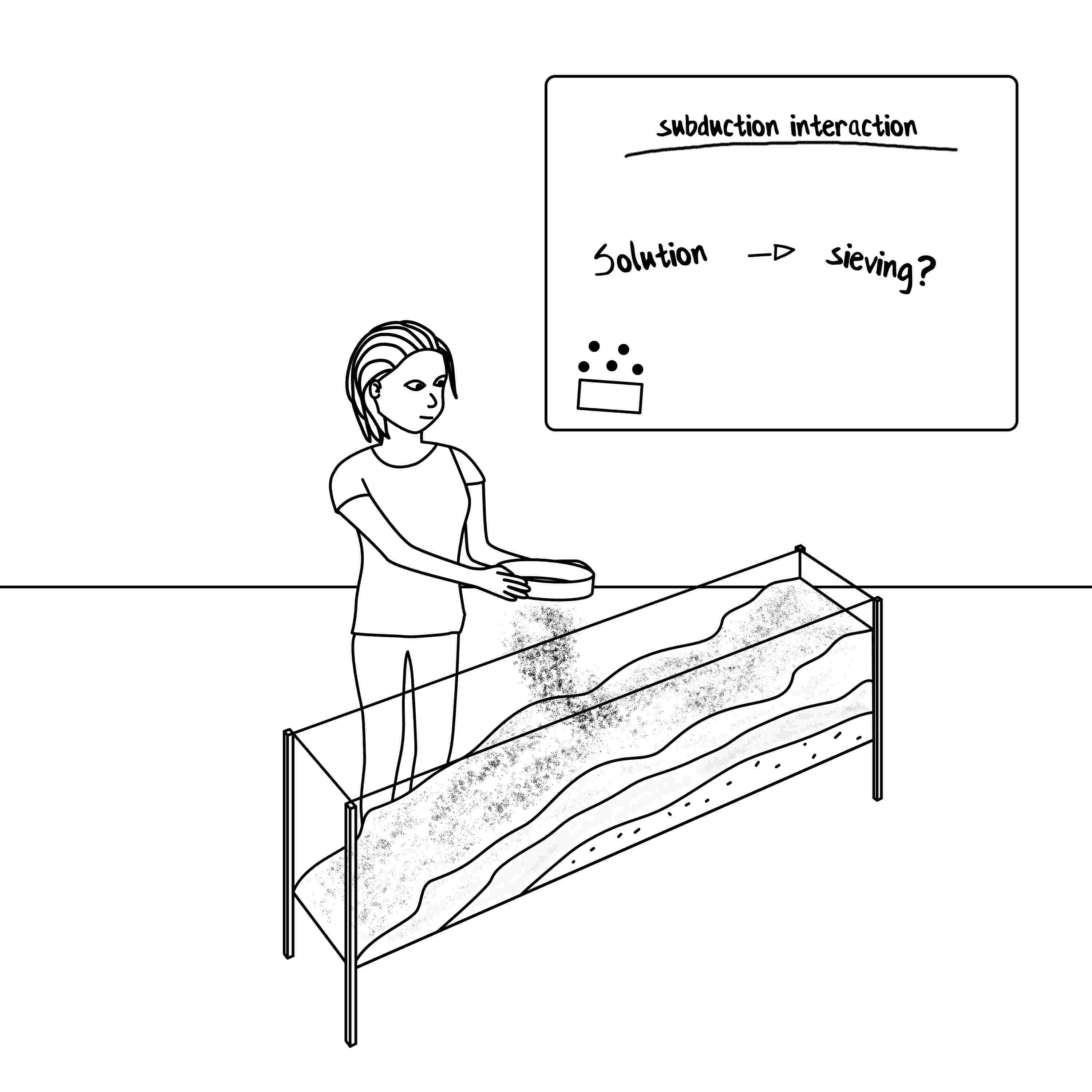 2: The first model failed failed due to too coarse sand not allowing the detailed structures Charlie needs for her analysis to form, but she initially thinks it's due to inproper sieving. This time she follows a strict sieving protocol setting up the analogue model.