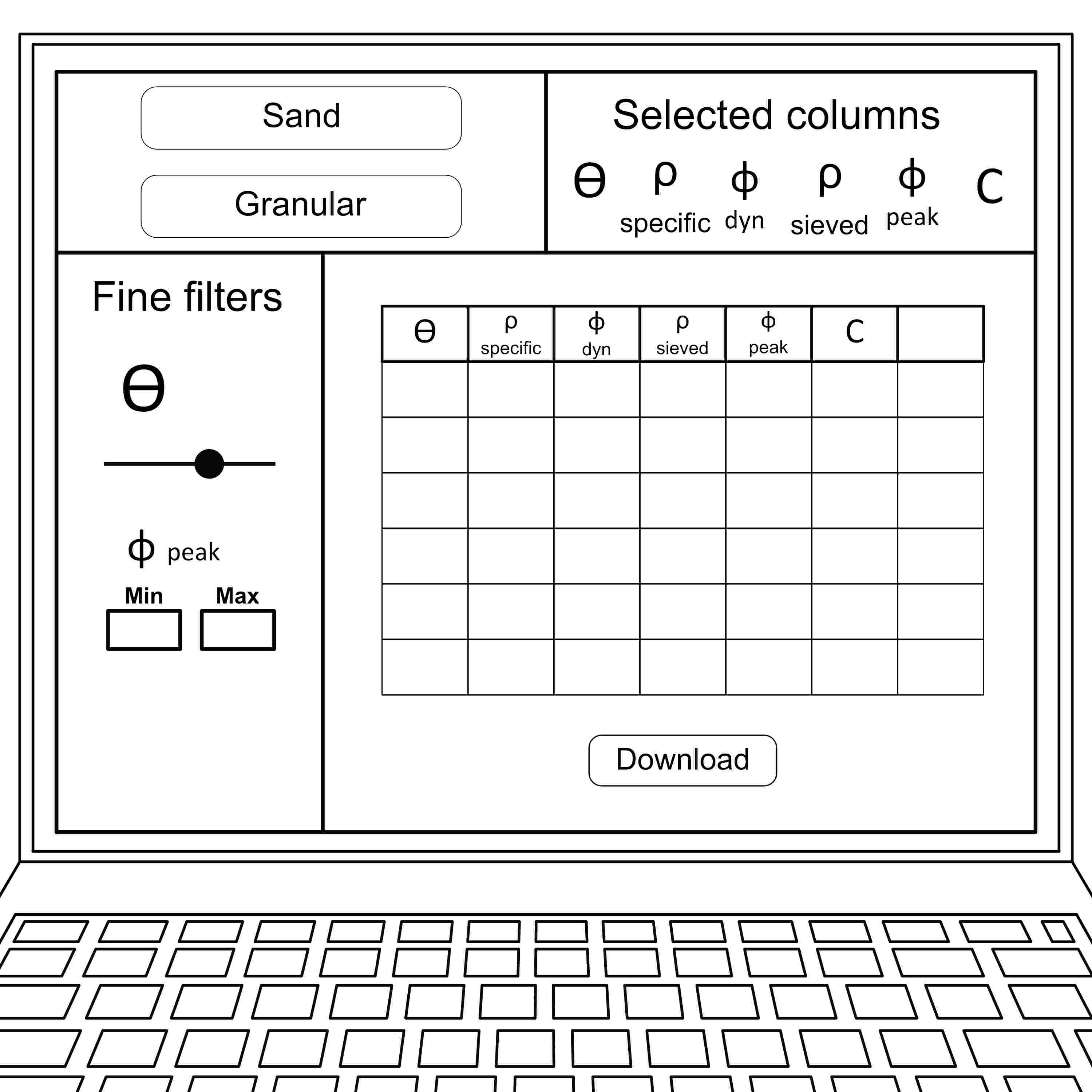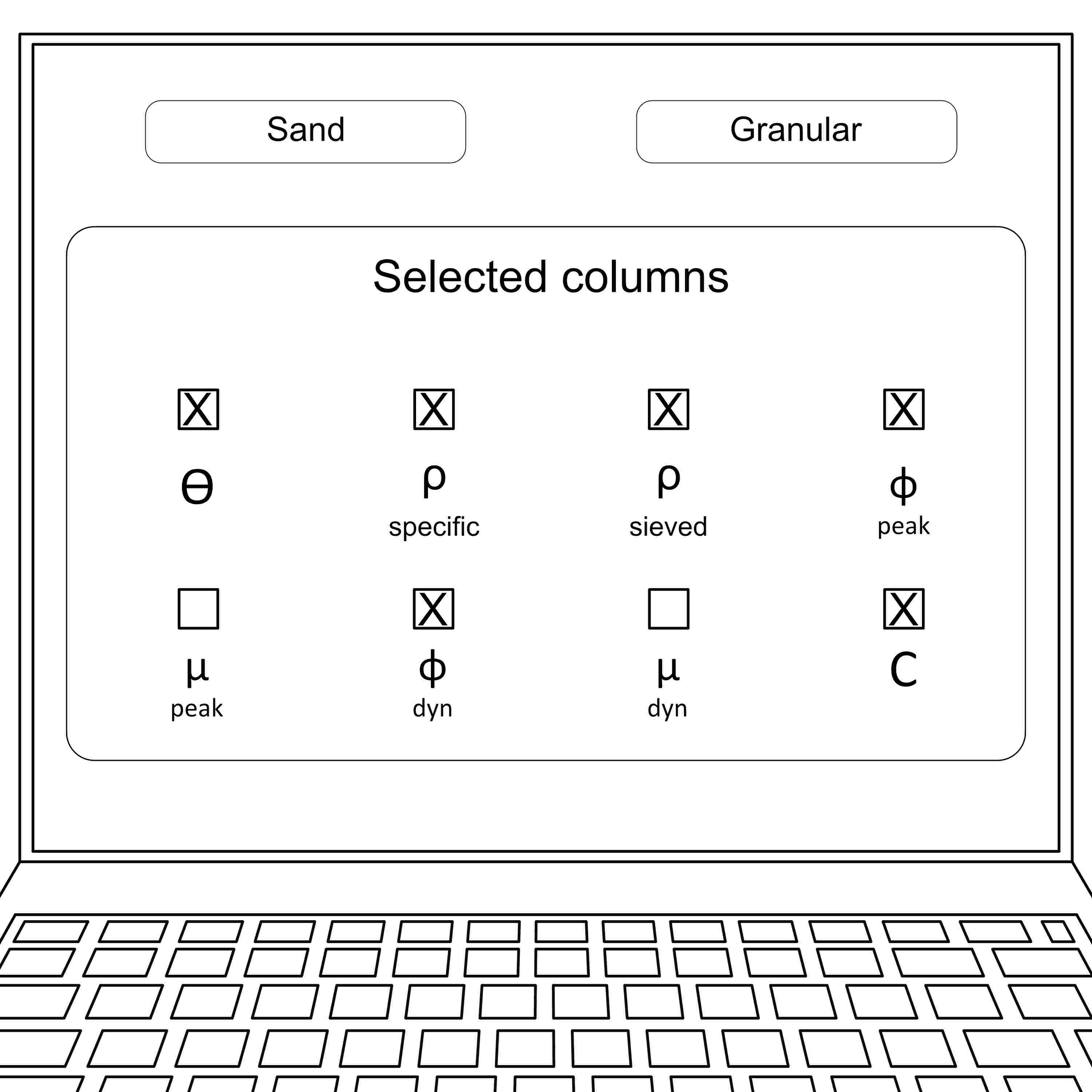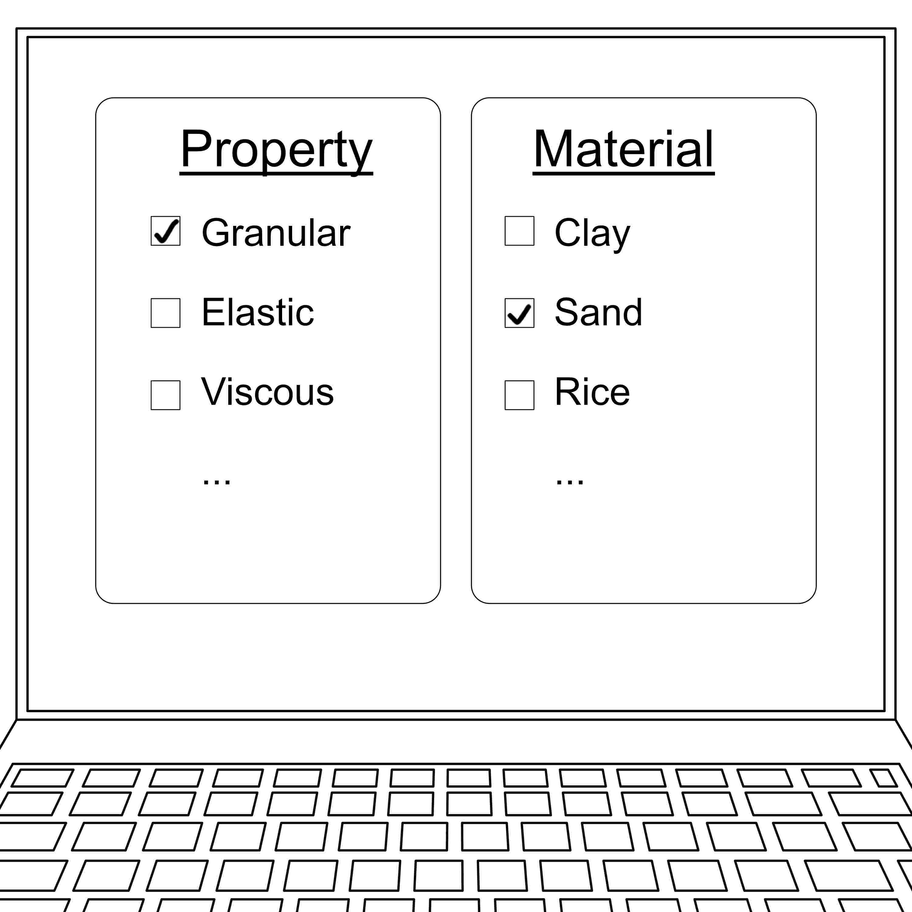 5: On the EPOS MSL data platform she opens the analogue modeling tool and is searching on the first page listing the analogue materials, where she can select between a variety of materials with properties, and selects the granular material and the sand.
